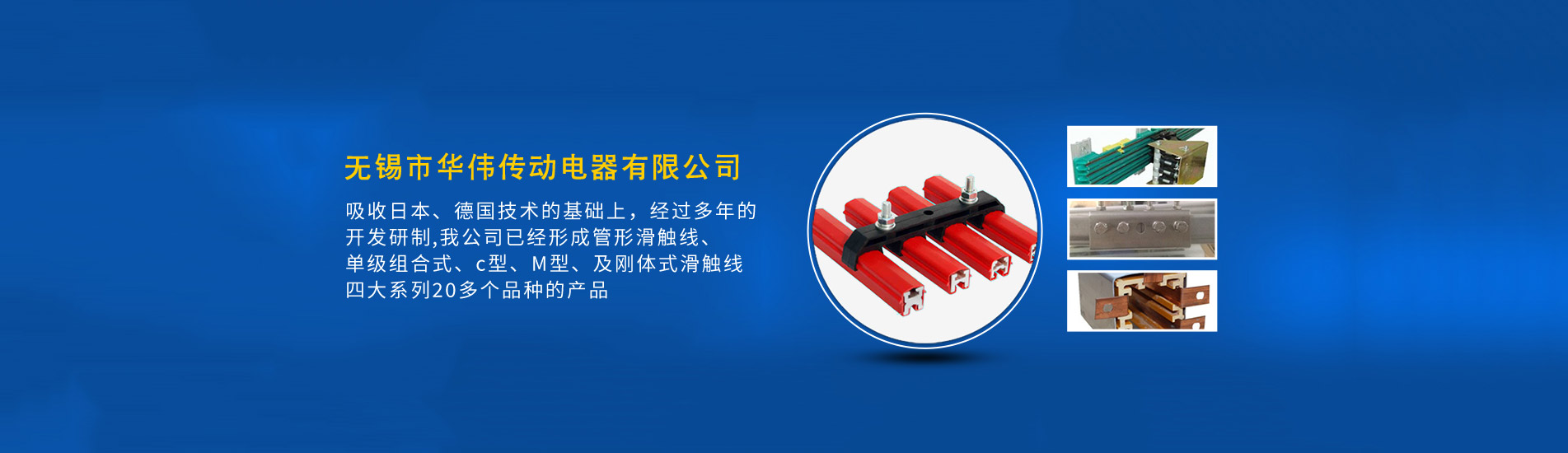 無(wú)錫市華偉傳動(dòng)電器有限公司是專業(yè)從事移動(dòng)供電系統(tǒng)的開(kāi)發(fā)和生產(chǎn)的企業(yè),在吸收日本、德國(guó)優(yōu)良技術(shù)的基礎(chǔ)上,經(jīng)過(guò)多年的開(kāi)發(fā)研制,我公司已經(jīng)形成管形滑觸線、單級(jí)組合式、C型、M型、及剛體式滑觸線四大系列20多個(gè)品種的產(chǎn)品,被廣泛應(yīng)用于冶金、起重運(yùn)輸、石油化工、機(jī)械制造、港口、電廠、自動(dòng)化...