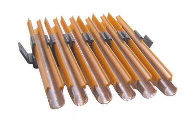 人們沿著變換設施的運行軌道平行敷設了若干條導體,接通電源。在變換設施上,人們又安裝上可以從導體上取電的集電器。這樣,當設施變換時,集電器隨著設施同步運行,并隨時從導體上取電源,提供給設施,以使設施可以繼續變換。這些導體和繼電器組成的裝置稱為滑觸線。