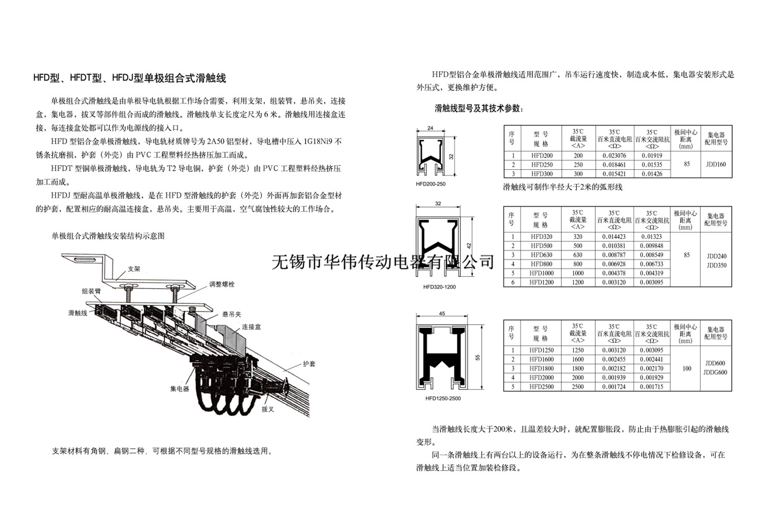 無錫市華偉傳動電器有限公司是專業從事移動供電系統的開發和生產的企業,在吸收日本、德國先進技術的基礎上,經過多年的開發研制,我公司已經形成管形滑觸線、單級組合式、C型、M型、及剛體式滑觸線四大系列20多個品種的產品,被廣泛應用于冶金、起重運輸、石油化工、機械制造、港口、電廠、自動化立體倉庫等領域,深受廣大用戶好評。